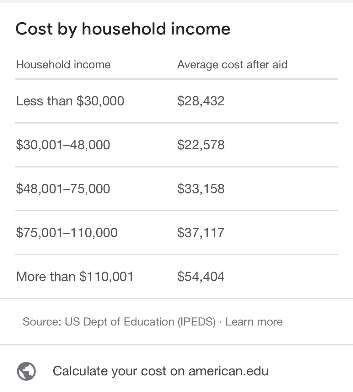 Here is American - I do not recommend American for lower to middle income families either. Their numbers are similar to Howard.