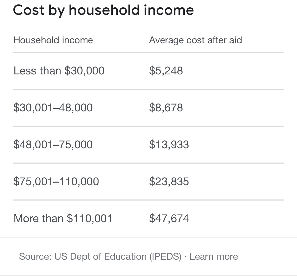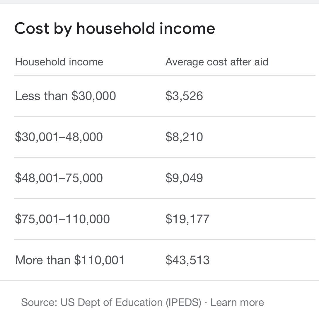 I guess I should have looked at the net price calculator before suggesting Howard as affordable! Thank you for pointing that out.