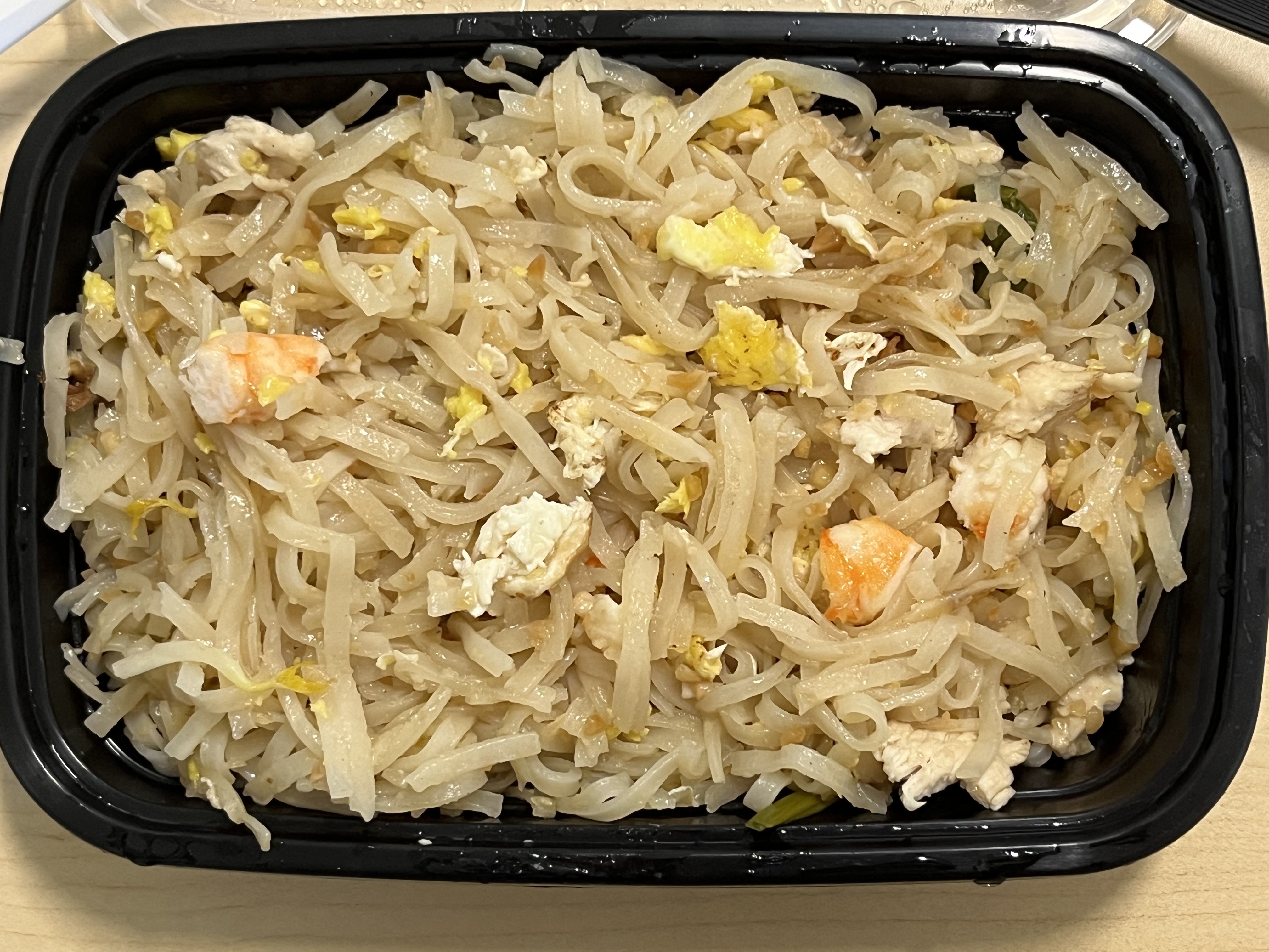 I just grabbed Pad Thai for lunch at a restaurant local to work. It was $10.65. I drink water with lunch.