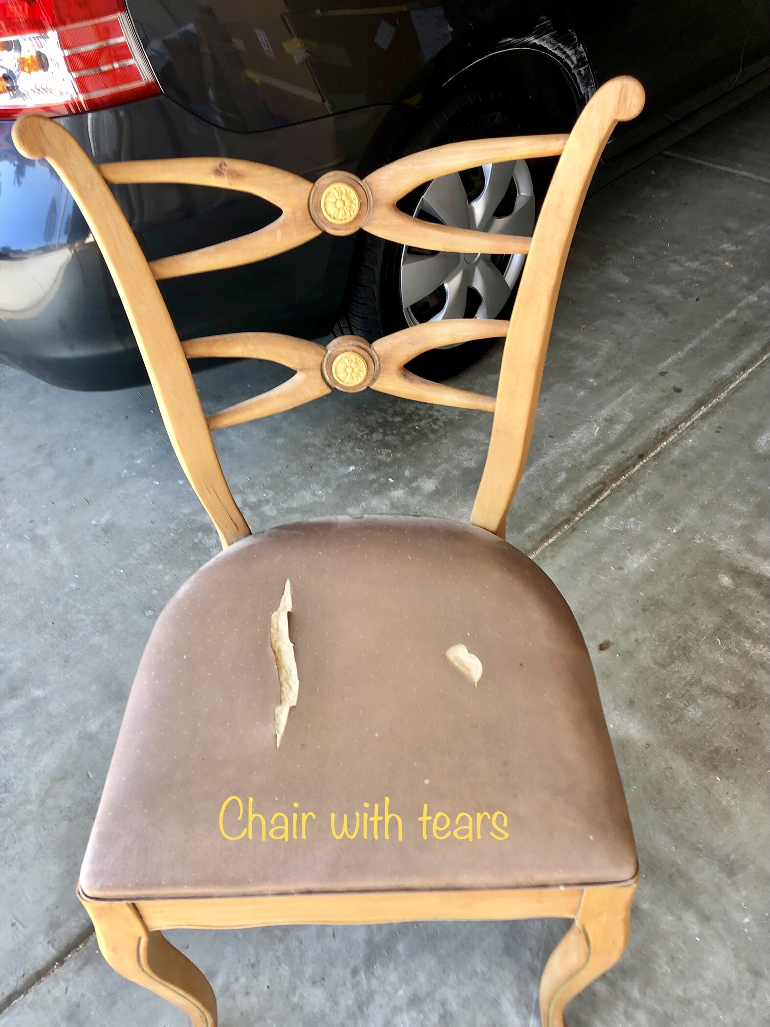 The torn upholstered chair has been requested by my cousin’s daughter who took a local Community College class in fine furniture upholstery. She loves the chair pictures and wants to keep it!