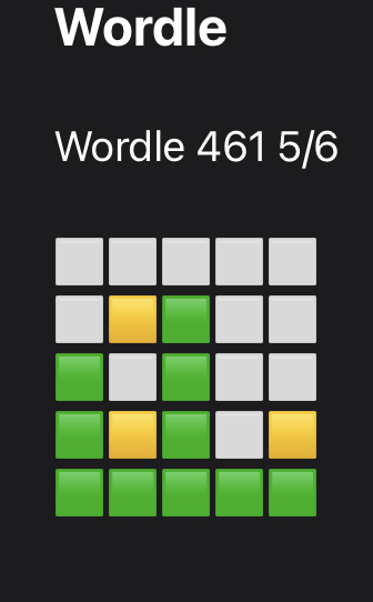 Took me a little bit to figure out even tho I got it in three guesses. All the words I was coming up with wouldnβt work b/c Iβd already used one of the letters incorrectly a previous guess.