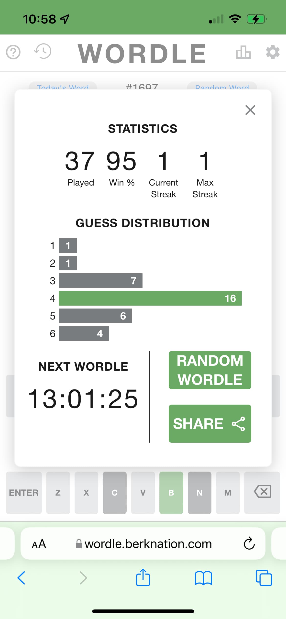 Thanks—doing pretty well with random words. Got both on 3rd guess!